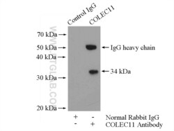 - IP result of anti-COLEC11 (IP:15269-1-AP, 4ug; Detection:15269-1-AP 1:500) with mouse liver tissue lysate 6400ug.