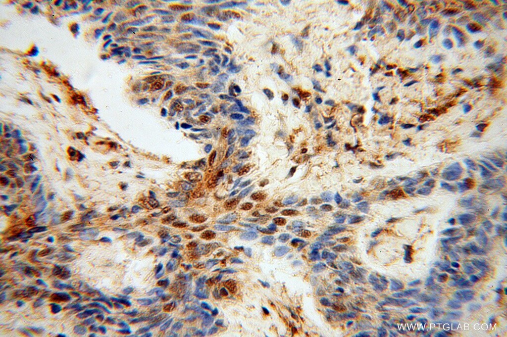 - Immunohistochemistry of paraffin-embedded human skin cancer using 11711-1-AP (GAR1 antibody) at dilution of 1:50 (under 10x lens).