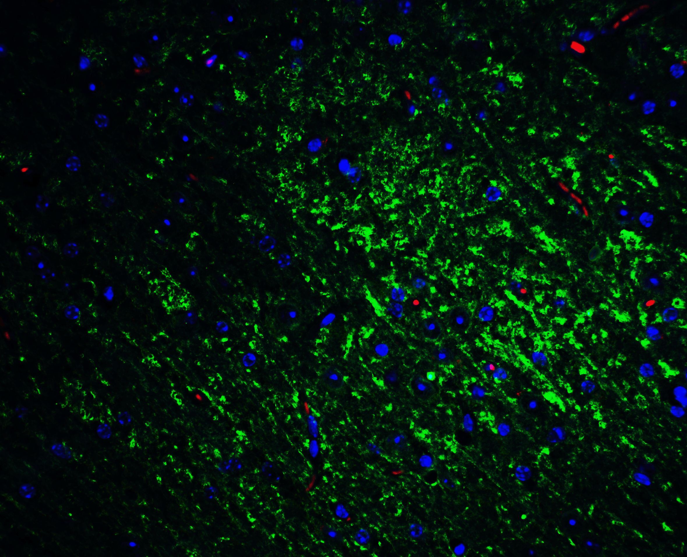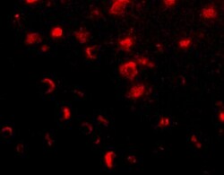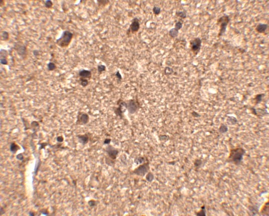 - Immunofluorescence of slitrk1 in human brain tissue with SLITRK1 Polyclonal Antibody (Product # PA5-20470) at 20 µg/mL.