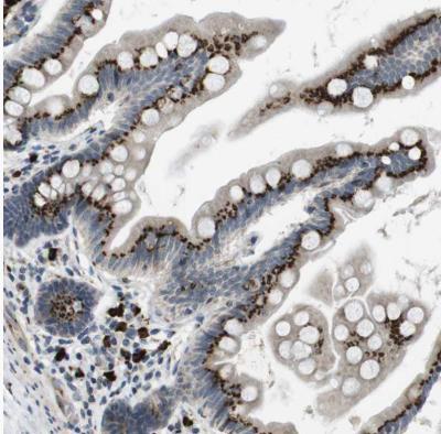 - Immunohistochemistry-Paraffin: ZFPL1 Antibody [NBP1-85347] - Staining of human small intestine shows moderate to strong positivity in golgi apparatus in glandular cells.