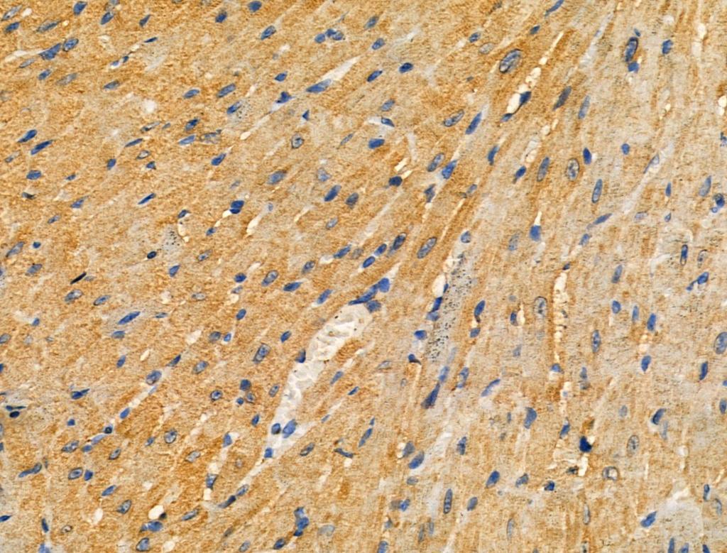 - Immunohistochemistry analysis of PARD3 in mouse heart tissue. The sample was formaldehyde fixed and a heat mediated antigen retrieval step in citrate buffer was performed. Samples were incubated with PARD3 polyclonal antibody (Product # PA5-106519) using a dilution of 1:100 (4°C overnight) followed by HRP conjugated anti-Rabbit secondary antibody.