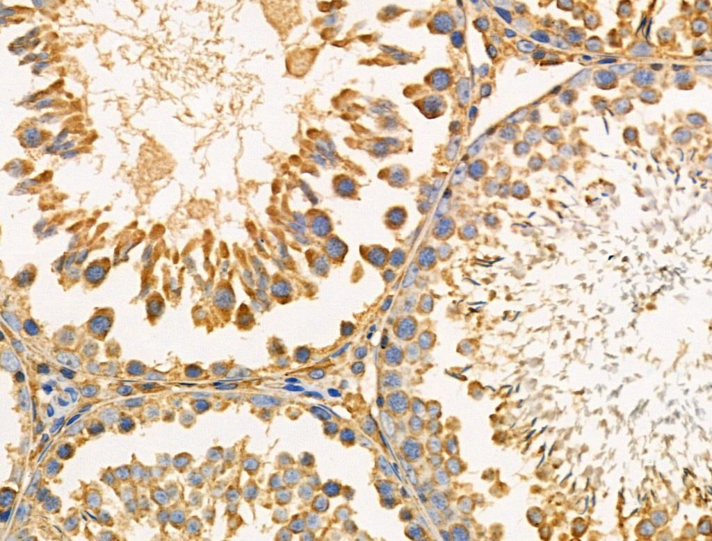 - Immunohistochemistry analysis of PARD3 in rat testis tissue. The sample was formaldehyde fixed and a heat mediated antigen retrieval step in citrate buffer was performed. Samples were incubated with PARD3 polyclonal antibody (Product # PA5-106519) using a dilution of 1:100 (4°C overnight) followed by HRP conjugated anti-Rabbit secondary antibody.