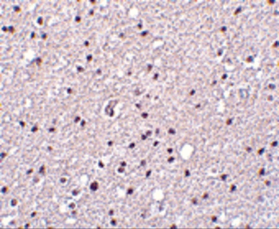 - Immunohistochemistry of Neurotrypsin in human brain tissue with Neurotrypsin Polyclonal Antibody (Product # PA5-20363) at 2.5 µg/mL.