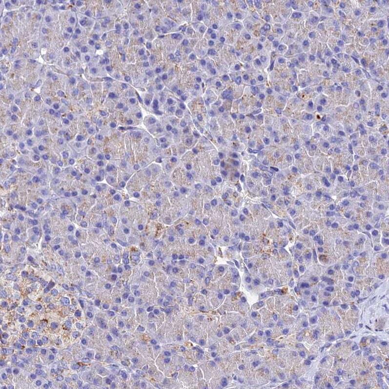 - Immunohistochemical analysis of SPNS1 in human pancreas using SPNS1 Polyclonal Antibody (Product # PA5-59813) shows very weak positivity in exocrine glandular cells as expected.