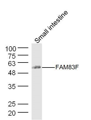 - Mouse small intestine lysates probed with FAM83F Polyclonal Antibody, Unconjugated (bs-11009R) at 1:300 dilution and 4°C overnight incubation. Followed by conjugated secondary antibody incubation at 1:20000 for 60 min at 37°C.