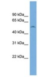- Western blotting of human placenta cell lysate using FAM83F antibody cat. no. AP46114PU-N