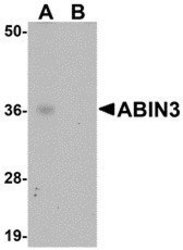 - ABIN3 antibody was raised against a 17 amino acid peptide near the carboxy terminus of human ABIN3. (AP30005CP-N)