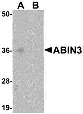 - ABIN3 antibody was raised against a 17 amino acid peptide near the carboxy terminus of human ABIN3. (AP30005CP-N)