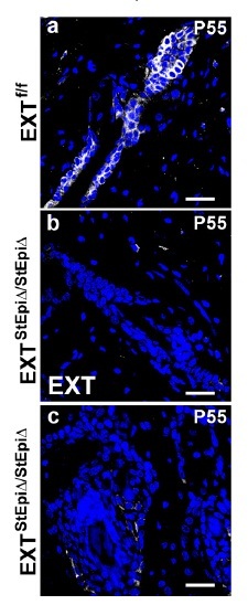 - Figure from citation: Immunofluorescence of EXT1 protein level by using anti-EXT1 antibody in hair follicle of EXT1StEpi /StEpi mice.