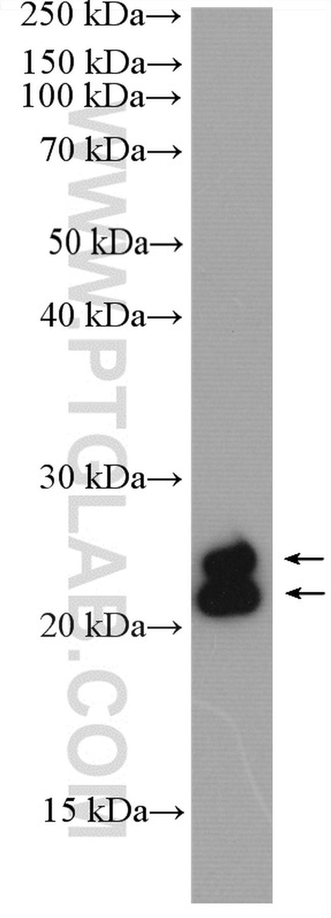 - Human milk tissue were subjected to SDS PAGE followed by western blot with 27131-1-AP (FAM3B antibody) at dilution of 1:300 incubated at room temperature for 1.5 hours.