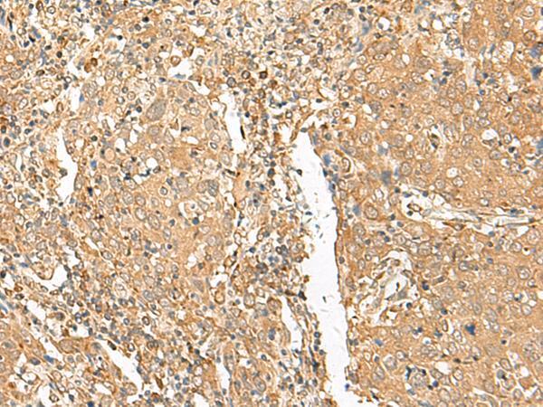 - Immunohistochemistry of paraffin-embedded Human cervical cancer tissue using GOLGA6A Polyclonal Antibody at dilution of 1:50(×200)