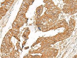 - Immunohistochemistry of paraffin-embedded Human colorectal cancer tissue using GOLGA6A Polyclonal Antibody at dilution of 1:50(×200)