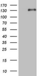 - HEK293T cells were transfected with the pCMV6-ENTRY control. (Left lane) or pCMV6-ENTRY LPIN1. (Right lane) cDNA for 48 hrs and lysed. Equivalent amounts of cell lysates. (5 ug per lane) were separated by SDS-PAGE and immunoblotted with anti-LPIN1.