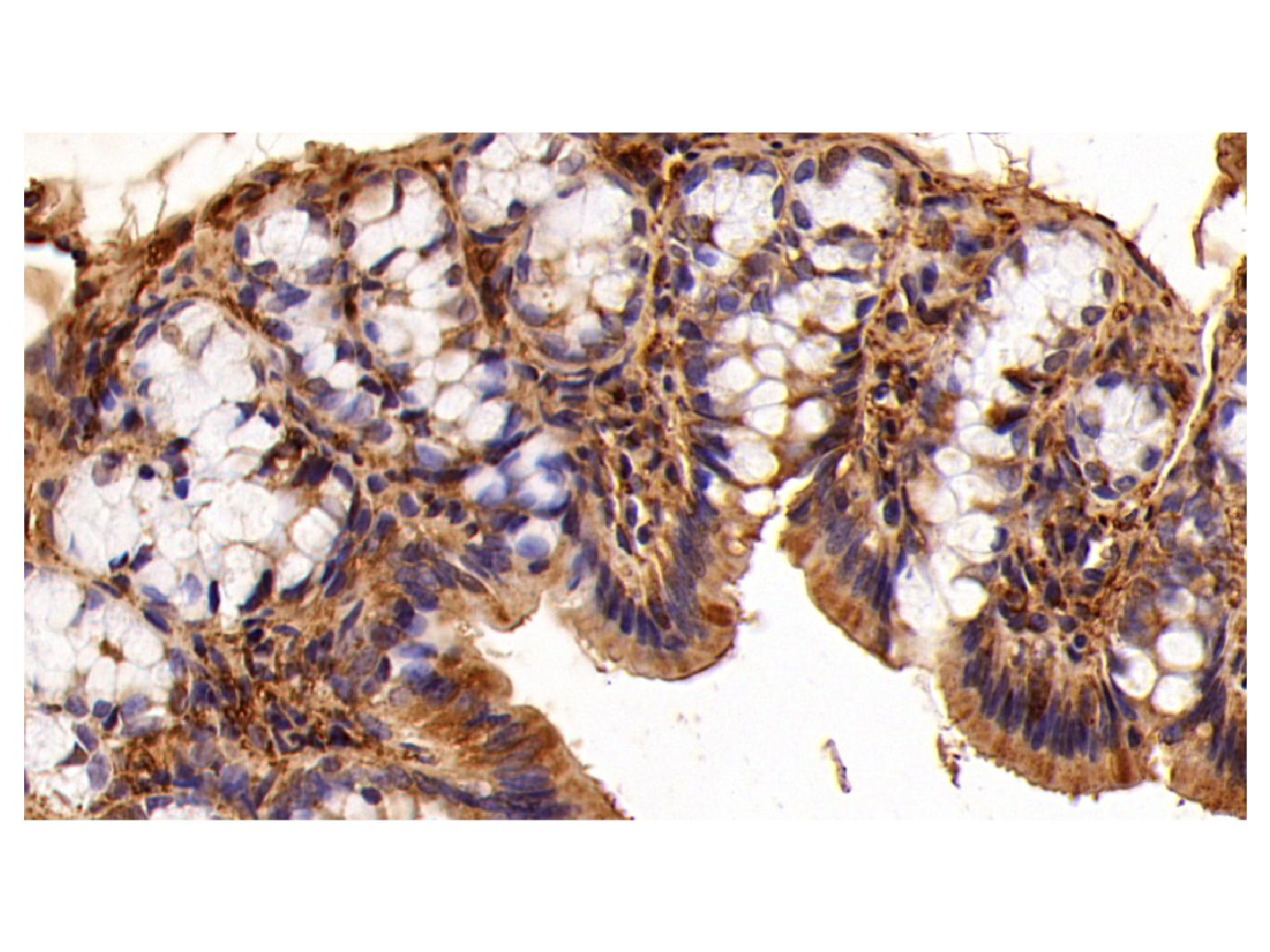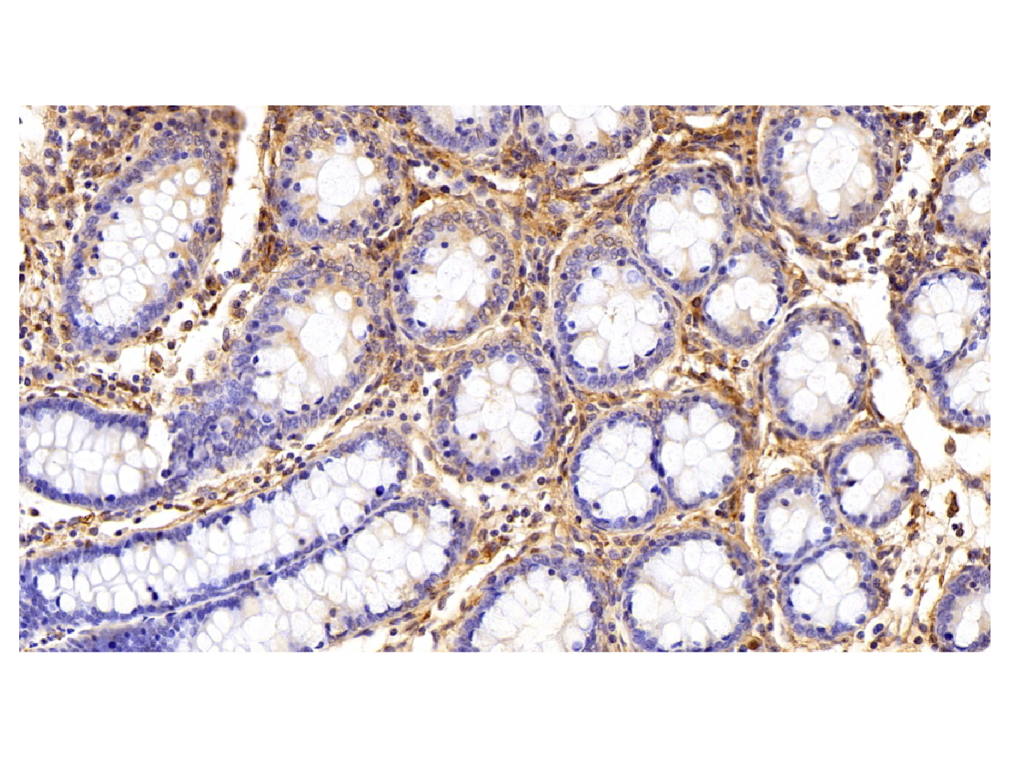 - Galectin 1 Antibody (Ab104554) - IHC DAB staining on IHC Sample: Porcine Colon Tissue Primary Ab: 20 µg/mL Galectin 1 Antibody (Ab104554) Second Ab: 2 µg/mL HRP-Linked Caprine Anti-Rabbit IgG Polyclonal Antibody.