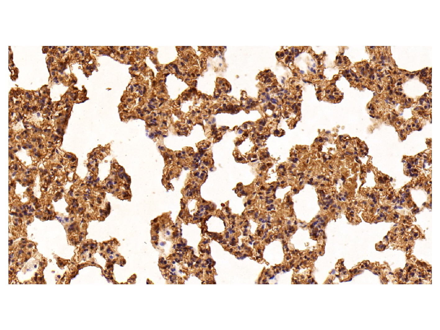 - Galectin 1 Antibody (Ab104554) - IHC DAB staining on IHC Sample: Rat Lung Tissue Primary Ab: 10 µg/mL Galectin 1 Antibody (Ab104554) Second Ab: 2 µg/mL HRP-Linked Caprine Anti-Rabbit IgG Polyclonal Antibody.