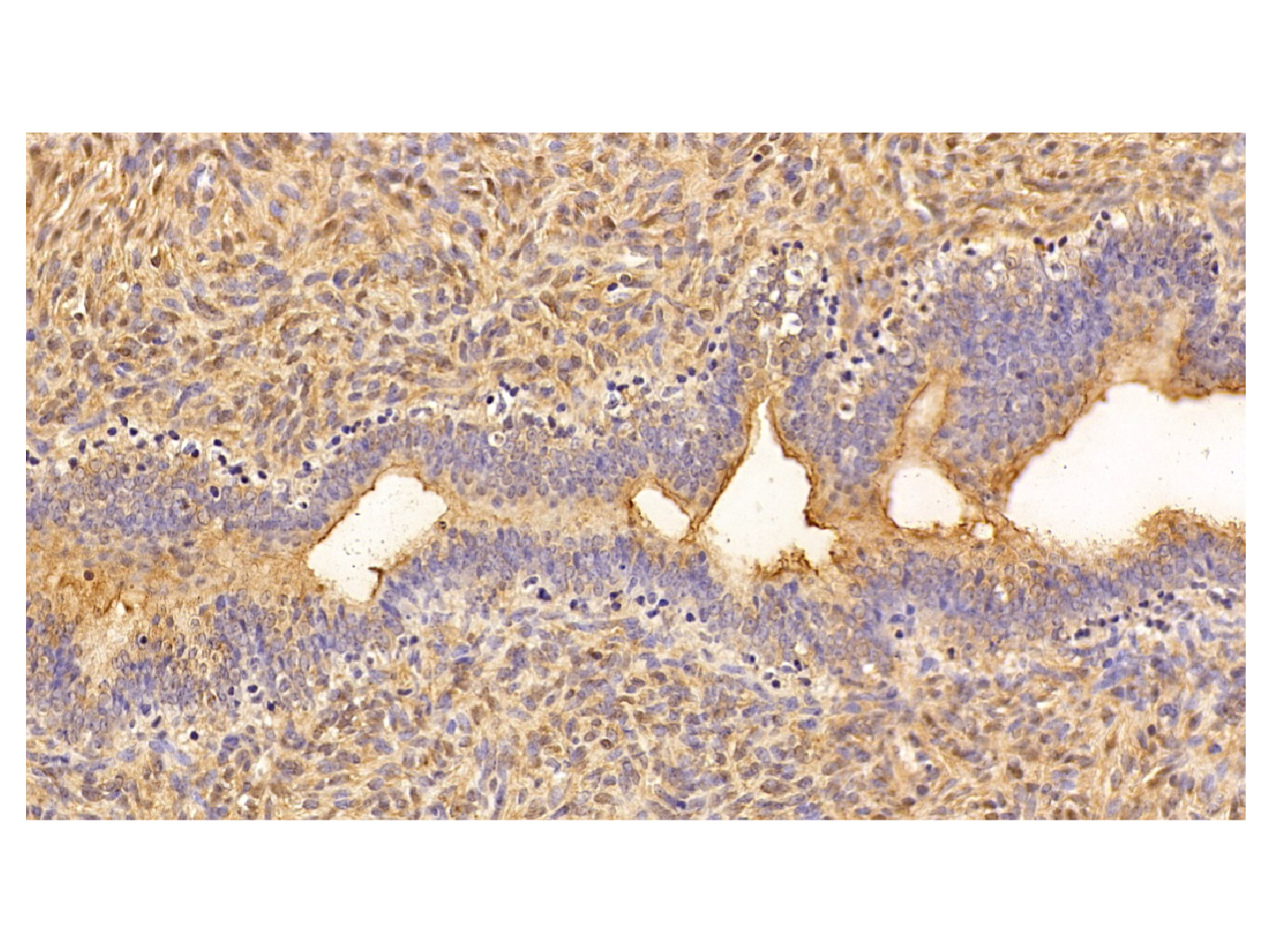 - Galectin 1 Antibody (Ab104554) - IHC DAB staining on IHC Sample: Porcine Uterus Tissue Primary Ab: 20 µg/mL Galectin 1 Antibody (Ab104554) Second Ab: 2 µg/mL HRP-Linked Caprine Anti-Rabbit IgG Polyclonal Antibody.
