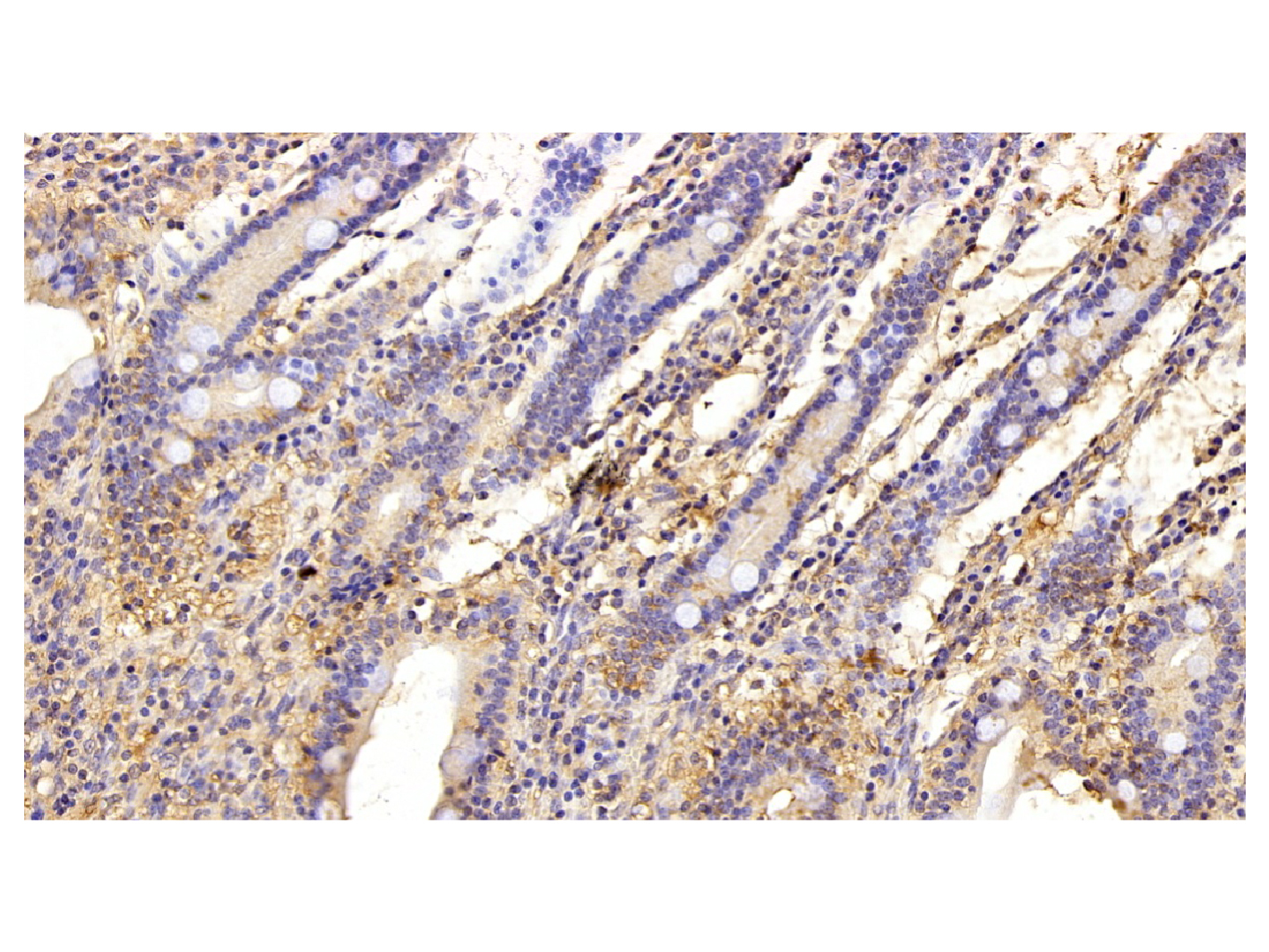- Galectin 1 Antibody (Ab104554) - IHC DAB staining on IHC Sample: Porcine Small intestine Tissue Primary Ab: 20 µg/mL Galectin 1 Antibody (Ab104554) Second Ab: 2 µg/mL HRP-Linked Caprine Anti-Rabbit IgG Polyclonal Antibody.