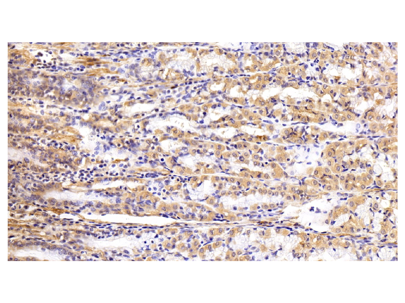 - Galectin 1 Antibody (Ab104554) - IHC DAB staining on IHC Sample: Porcine Stomach Tissue Primary Ab: 20 µg/mL Galectin 1 Antibody (Ab104554) Second Ab: 2 µg/mL HRP-Linked Caprine Anti-Rabbit IgG Polyclonal Antibody.