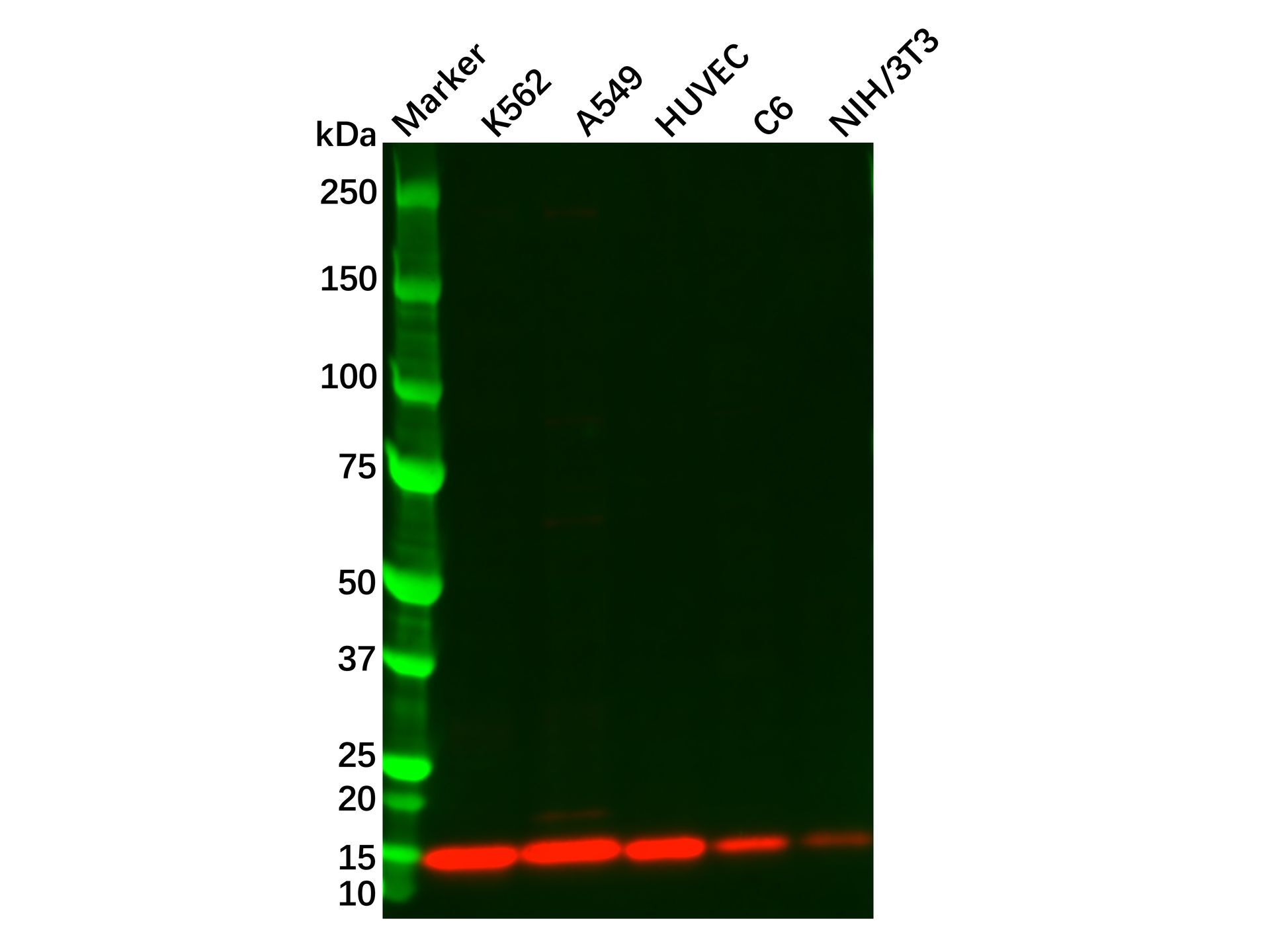 - Galectin 1 Antibody (Ab104554) - Western Blot All lanes: Galectin 1 Antibody (Ab104554) at 1/1000 dilution Samples: Lysates at 20 µg per lane Secondary: Goat Anti-Rabbit IgG H&L (HRP) (Ab170144) at 1/20000 dilution Predicted band size: 15 kDa Observed band size: 15 kDa Exposure time: 2.3 s