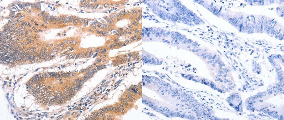 - Predicted cell location: Cytoplasm. Positive control: Human colon cancer tissue. Recommended dilution: 1/25-100 The image on the left is immunohistochemistry of paraffin-embedded human colon cancer tissue using FBXO32 antibody at dilution 1/25, on the right is treated with the fusion protein. (Original magnification:x200)