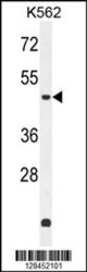 - ZN572 Antibody (C-term) western blot analysis in K562 cell lysates (35ug/lane).This demonstrates the ZN572 antibody detected the ZN572 protein (arrow).