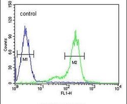 - Flow cytometry analysis of K562 cells using a ZN572 polyclonal antibody (Product # PA5-24264) (right) compared to a negative control cell (left) at a dilution of 1:10-50, followed by a FITC-conjugated goat anti-rabbit antibody