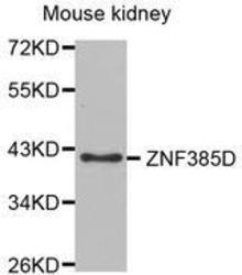 - Western blot analysis of extracts of Mouse kidney cell line, using ZNF385D antibody.
