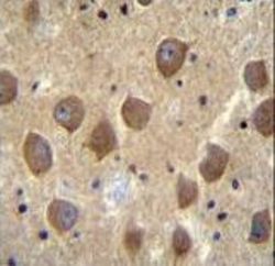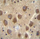 - PCDHB3 Antibody immunohistochemistry of formalin-fixed and paraffin-embedded human brain tissue followed by peroxidase-conjugated secondary antibody and DAB staining.