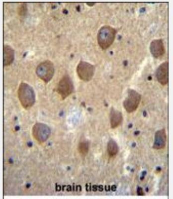 - Immunohistochemistry-Paraffin: Protocadherin beta 3 Antibody [NBP2-30035] - Immunohistochemistry analysis in formalin fixed and paraffin embedded human brain tissue followed by peroxidase conjugation of the secondary antibody and DAB staining.This data demonstrates the use of PCDHB3 Antibody (N-term) for immunohistochemistry. Clinical relevance has not been evaluated.