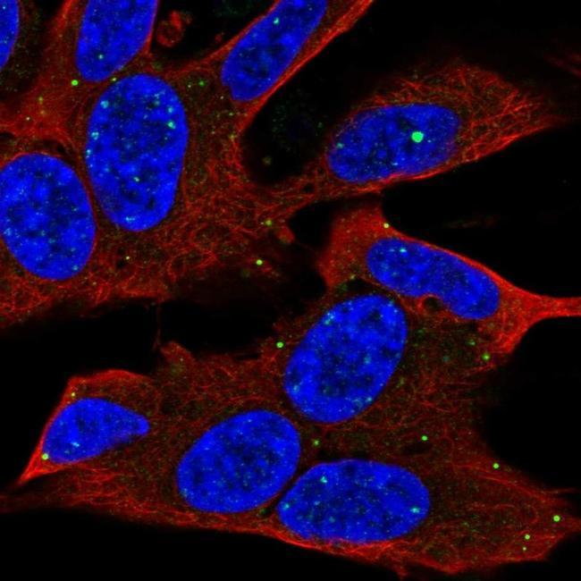 - Immunofluorescent staining of PCDHB3 in human cell line SH-SY5Y using a PCDHB3 Polyclonal Antibody (Product # PA5-62167) shows localization to vesicles.