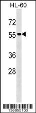 - SEPT1 Antibody (N-term) (Cat. #AP16865a) western blot analysis in HL-60 cell line lysates (35ug/lane).This demonstrates the SEPT1 antibody detected the SEPT1 protein (arrow).