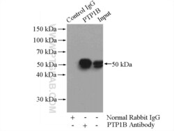 - IP result of anti-PTP1B (IP:11334-1-AP, 4ug; Detection:11334-1-AP 1:500) with A431 cells lysate 2400ug.