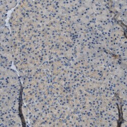 - Immunohistochemical staining of MAN2A2 in human pancreas using MAN2A2 Polyclonal Antibody (Product # PA5-53563) shows no cytoplasmic positivity in exocrine glandular cells as expected.