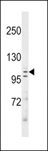 - MAN2C1 Antibody western blot of HepG2 cell line lysates (35 ug/lane). The MAN2C1 antibody detected the MAN2C1 protein (arrow).