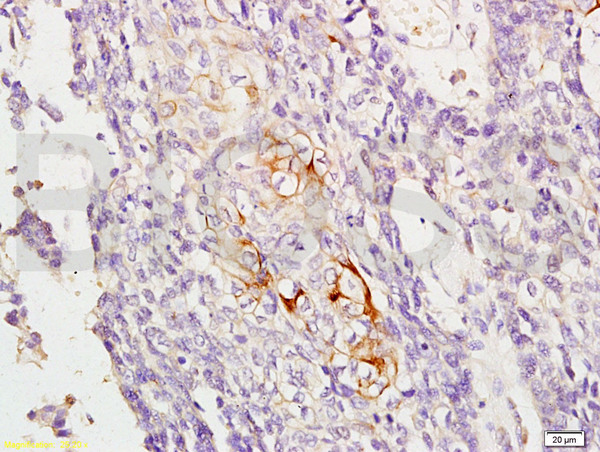 - Formalin-fixed and paraffin embedded human esophageal carcinoma labeled with Anti-RAB8 Polyclonal Antibody, Unconjugated (bs-6176R) at 1:200, followed by conjugation to the secondary antibody and DAB staining