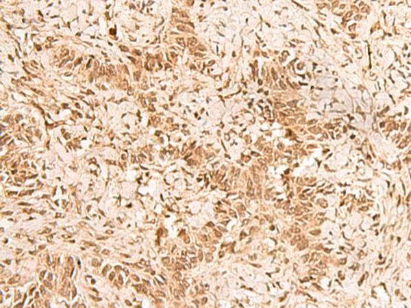 - Immunohistochemistry of paraffin-embedded Human ovarian cancer tissue using HOXC12 Polyclonal Antibody at dilution of 1:50(×200)