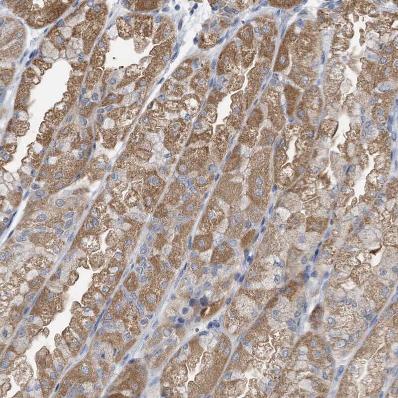 - Immunohistochemical analysis of C2orf43 in human stomach using C2orf43 Polyclonal Antibody (Product # PA5-57034) shows moderate cytoplasmic positivity in glandular cells.