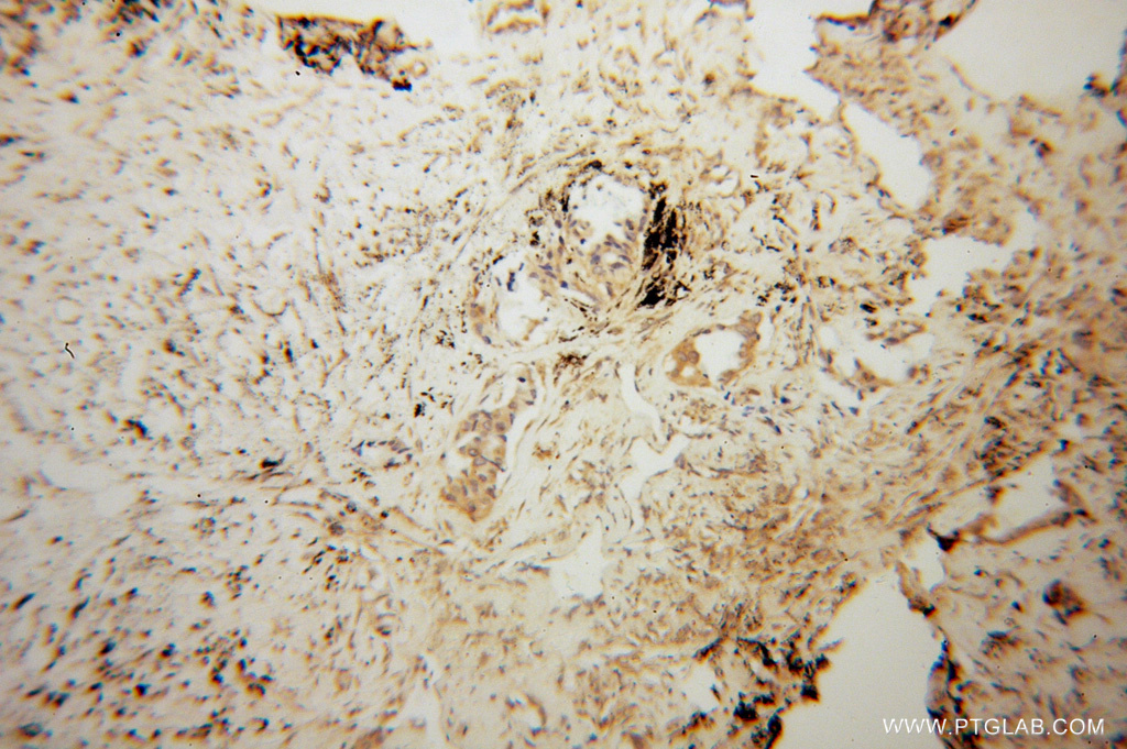 - Immunohistochemical of paraffin-embedded human lung cancer using 14344-1-AP(KIF4A antibody) at dilution of 1:50 (under 10x lens)
