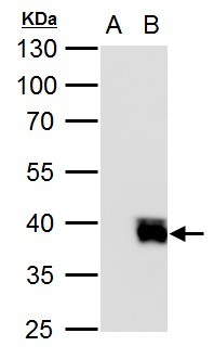- Islet2 antibody detects Islet2 protein by western blot analysis.A. 30 £gg 293T whole cell lysate/extract B. 30 £gg whole cell lysate/extract of human ISL2-transfected 293T cells10 % SDS-PAGEIslet2 antibody (GTX129375) dilution: 1:5000