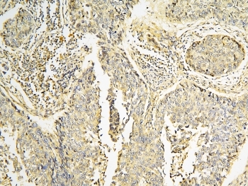 - IHC staining of FFPE human lung cancer with CPAMD8 antibody at 1ug/ml. HIER: boil tissue sections in pH6, 10mM citrate buffer, for 10-20 min and allow to cool before testing.