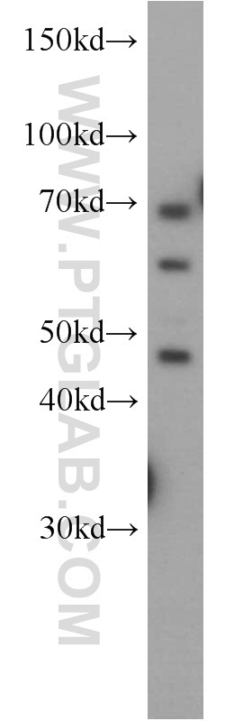 - HeLa cells were subjected to SDS PAGE followed by western blot with 15096-1-AP(NAGA antibody) at dilution of 1:1000