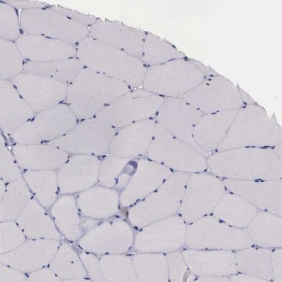 - Immunohistochemistry-Paraffin: alpha-N-acetylgalactosaminidase/NAGA Antibody [NBP1-84318] - Staining of human skeletal muscle shows no positivity in myocytes as expected.