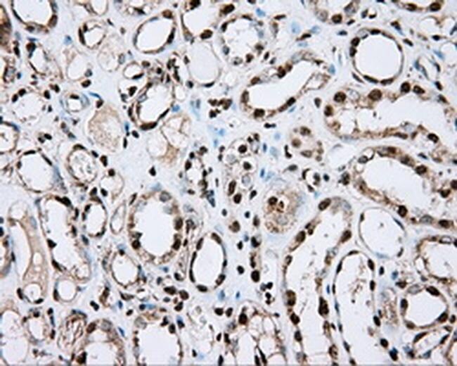 - Immunohistochemical staining of paraffin-embedded Kidney tissue within the normal limits using anti-ACSBG1 mouse monoclonal antibody. (Heat-induced epitope retrieval by 10mM citric buffer, pH6.0, 100°C for 10min, TA501176, Dilution 1:50)