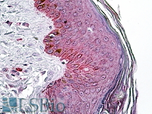 - EB08402 (3.8µg/ml) staining of paraffin embedded Human Skin. Steamed antigen retrieval with citrate buffer pH 6, AP-staining.