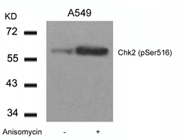 - Western blot analysis of extracts from A549 cells untreated or treated with Anisomycin using Chk2(Phospho-Ser516) Antibody #11147.