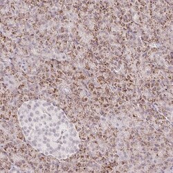 - Immunohistochemical analysis of ZFP41 in human pancreas using ZFP41 Polyclonal Antibody (Product # PA5-63276) shows strong cytoplasmic positivity, with a granular pattern in exocrine glandular cells.