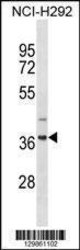 - ZNF696 Antibody (N-term) (ABIN1882033) western blot analysis in NCI-H292 cell line lysates (35 μg/lane). This demonstrates the ZNF696 antibody detected the ZNF696 protein (arrow).