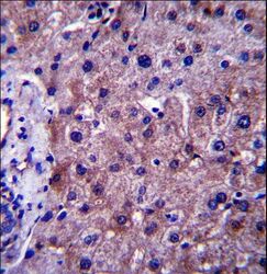 - SGMS1 Antibody immunohistochemistry of formalin-fixed and paraffin-embedded human liver tissue followed by peroxidase-conjugated secondary antibody and DAB staining.