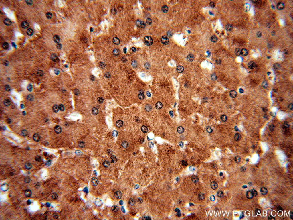 - Immunohistochemical of paraffin-embedded human liver using 19050-1-AP(SGMS1 antibody) at dilution of 1:50 (under 10x lens)
