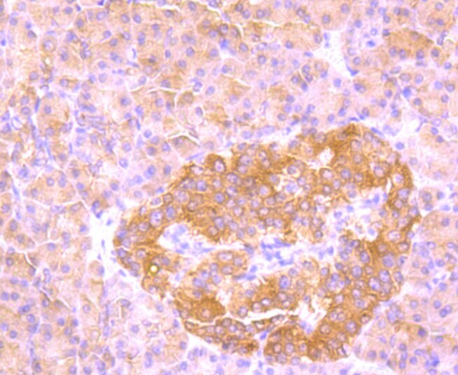 - Immunohistochemical analysis of FBXL2 of paraffin-embedded Human pancreas tissue using a FBXL2 Polyclonal antibody (Product #PA5-86061). Counter stained with hematoxylin.